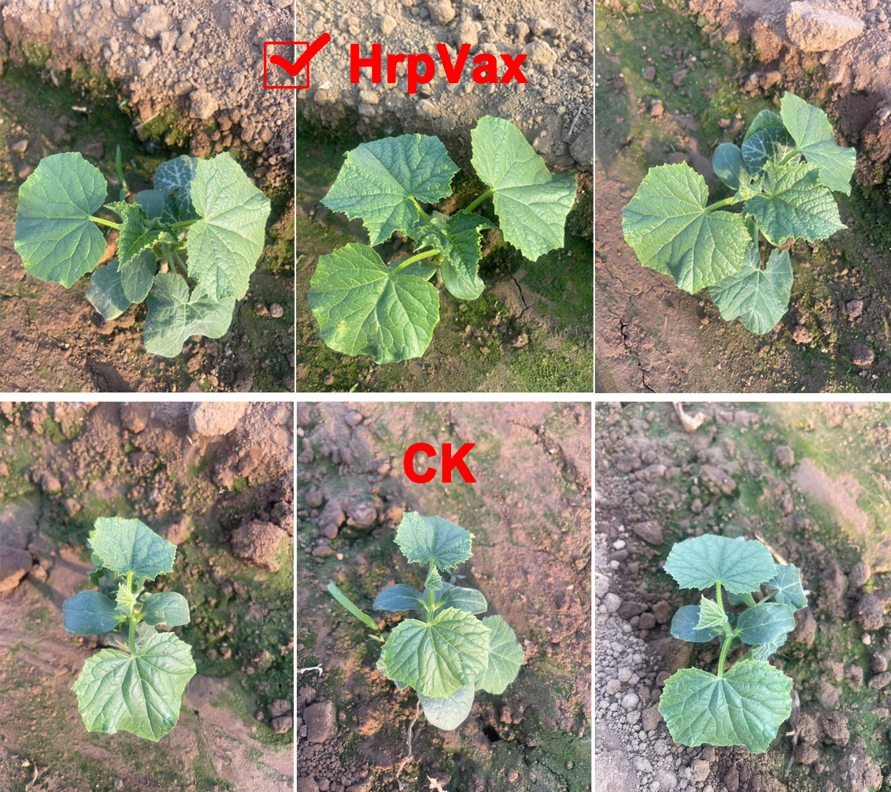 After planting, spraying HrpVax protein can promote the nutritional growth of cucumbers, thick and green leaves, and healthier growth of the plants.